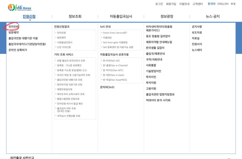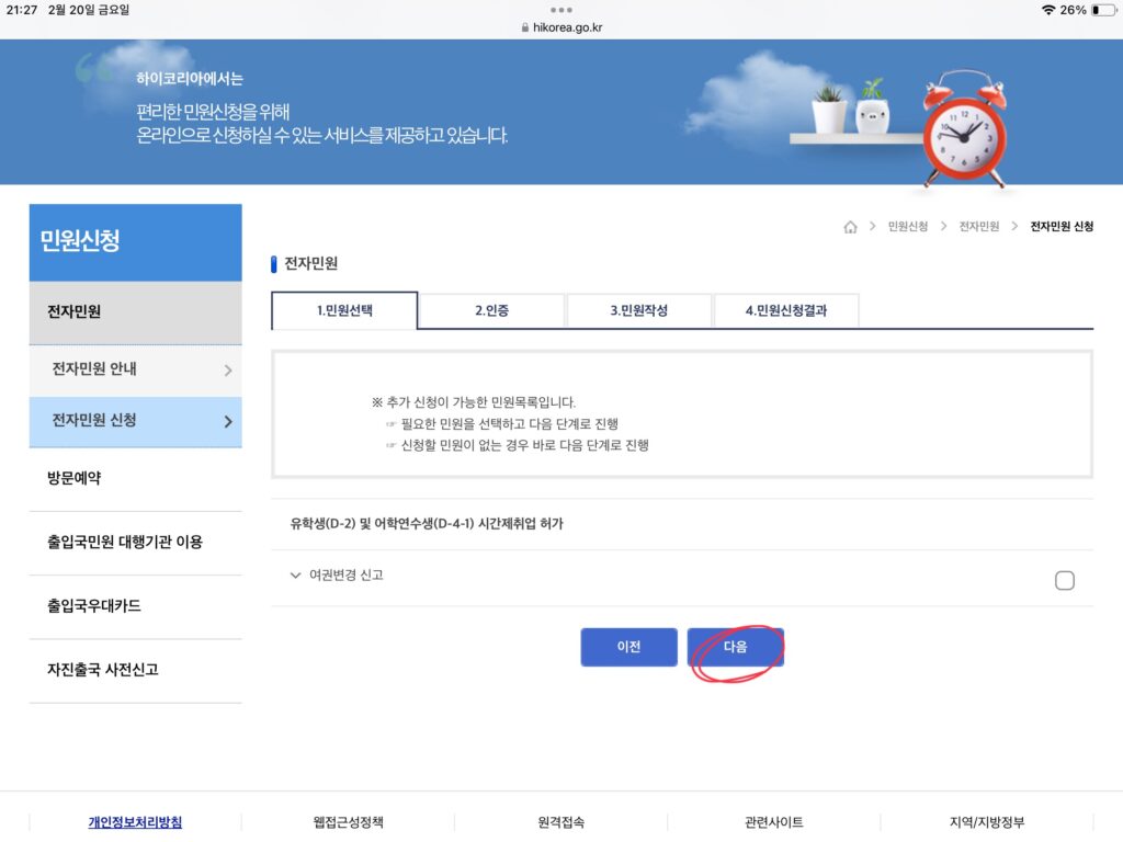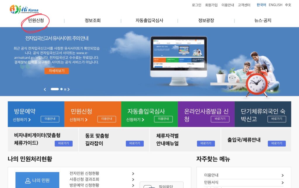 左上の민원신청(民間申請)をクリック